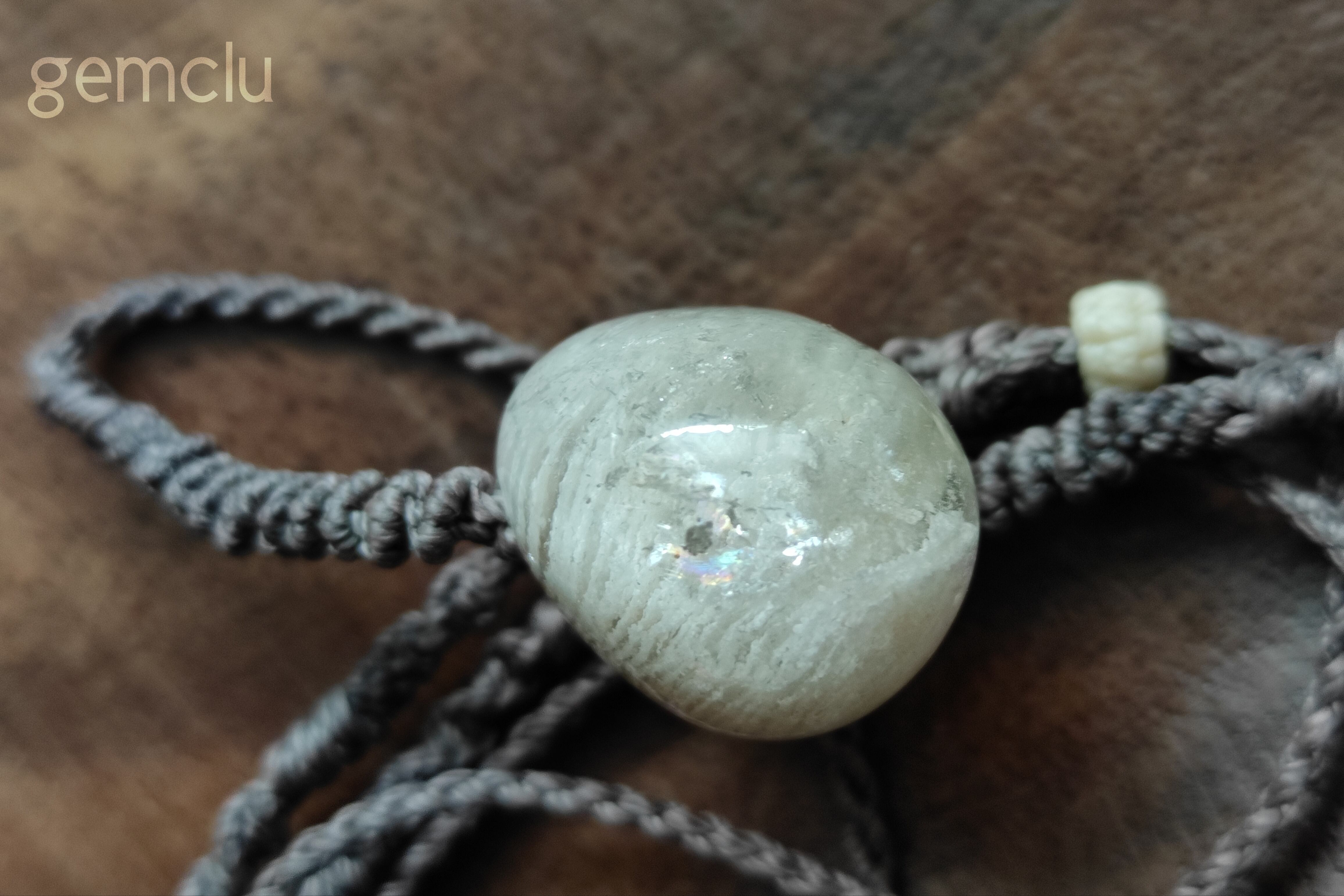 この小石さんはとてもクリアで白色の縞模様。画像では全箇所お見せできませんでしたが、沢山の虹が見られます。